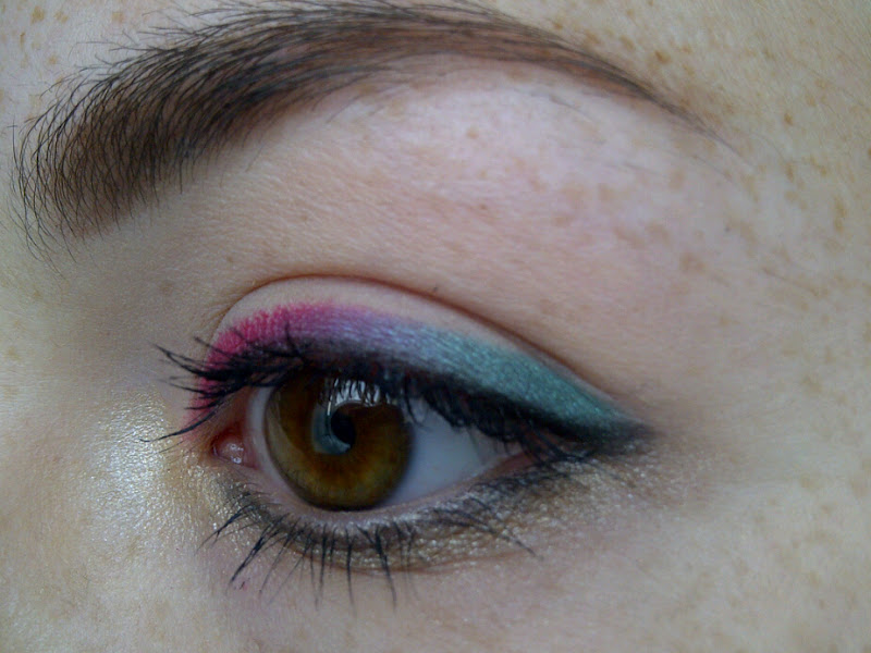 * Step three - Taking a flat shadow brush, blend the two colours together